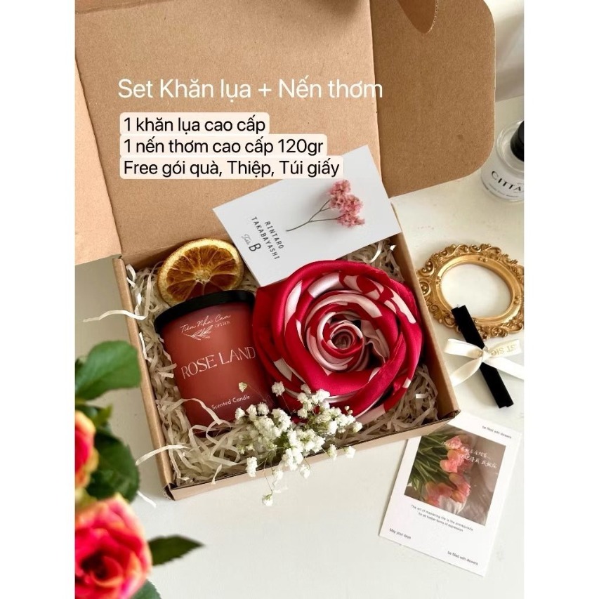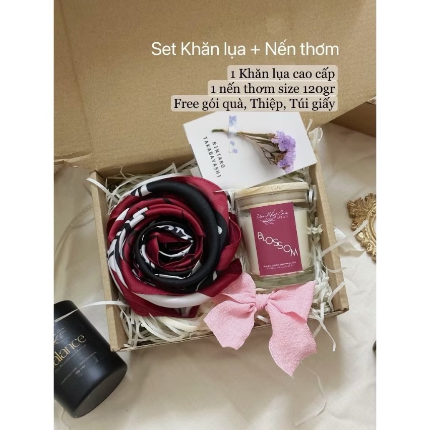 Bạn đang tìm kiếm một món quà vừa tinh tế "taphoa43 mời bạn tham khảo Set Quà Tặng Khăn Lụa + Nến Thơm Blossom + nước hoa", sang trọng lại vừa thể hiện được sự quan tâm chân thành dành cho những người phụ nữ thân yêu?